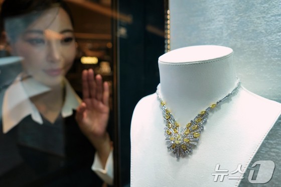 모델이 약 38캐럿의 다이아몬드가 장식된 목걸이를 바라보는 모습. 롯데백화점 제공 2024.12.1/뉴스1불황에 따른 소비 양극화 현상이 두드러…