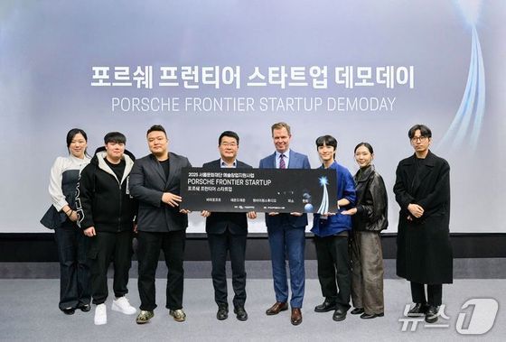 마티아스 부세포르쉐코리아 대표오른쪽에서 네 번째가 20일 서울 서대문구 청년예술청에서 열린 ‘포르쉐 프런티어 스타트업’ 데모데이에 참석해청년 유망 예술…