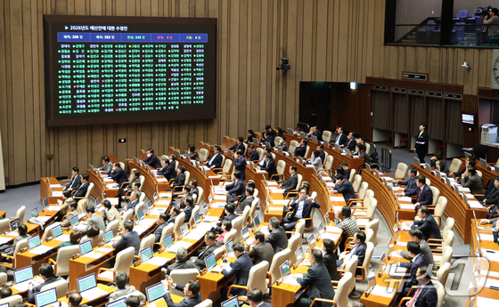728조 원 규모의 새해 예산안이 처리 법정 시한인 2일 서울 여의도 국회에서 열린 제429회국회정기회 제14차 본회의에서 2026년도 예산안 수정안이…