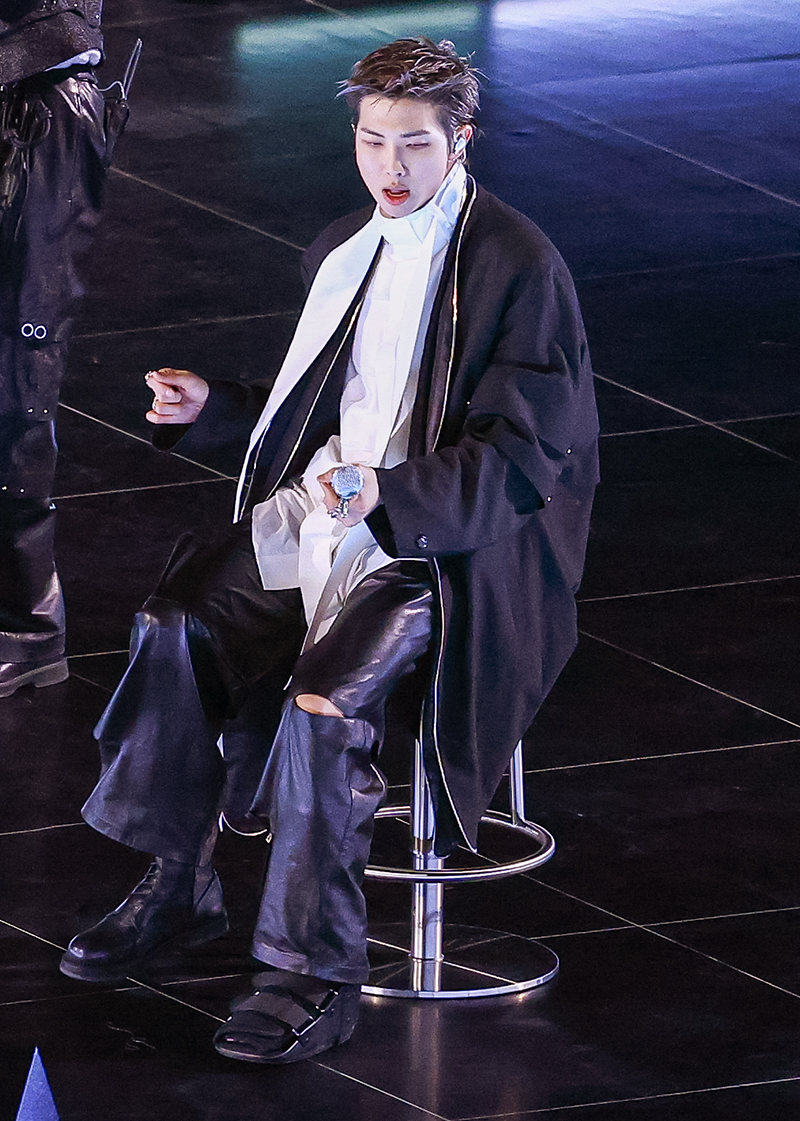 방탄소년단(BTS) RM이 21일 오후 서울 광화문광장에서 열린 BTS 컴백 라이브: ARIRANG 콘서트 행사에 참석해 무대를 선보이고 있다. 방탄소년단(RM 진 슈가 제이홉 지