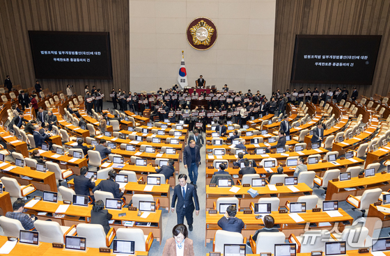 28일 서울 여의도 국회에서 열린 제432회 국회임시회 제8차 본회의에서 대법관 증원을 골자로 하는 법원조직법 일부개정법률안대안에 대…