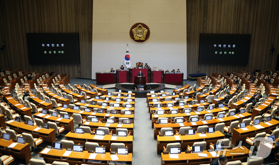 19일 서울 여의도 국회에서 열린 제433회국회임시회 2차 본회의에서 윤상현 국민의힘 의원이 공소청법안대안에 대한 무제한토론…