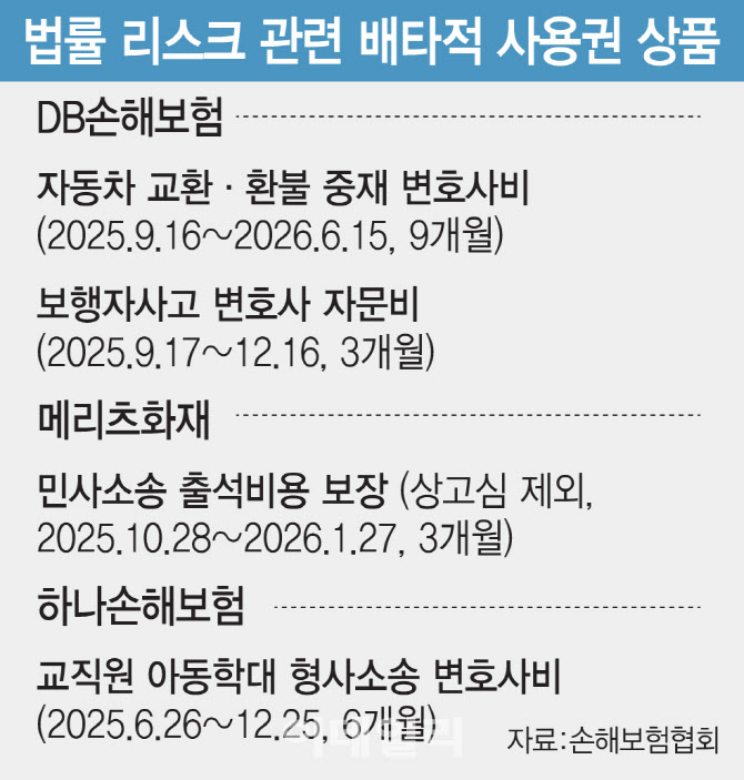 [이데일리 양희동 기자] 스쿨존 교통사고나 아동학대 신고 등 일상에서 강력한 법적 처벌로 이어질 수 있는 법률 리스크가 갈수록 커지고 있다. 이에 보험업계에선 변호사 선임이나 민사