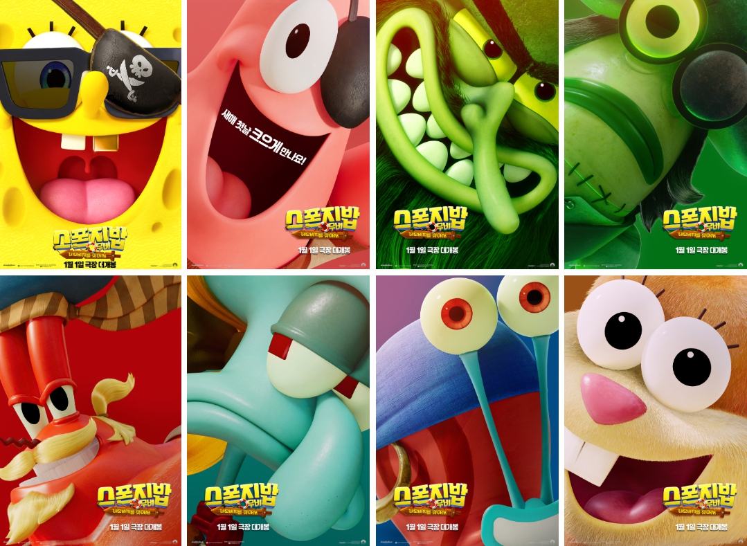 '스폰지밥 무비: 네모바지를 찾아서' 스폰지밥·뚱이→다람이 캐릭터 포스터