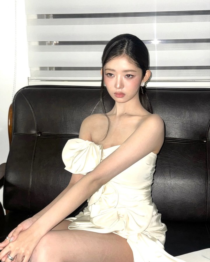 아이브 레이, 앞머리 걷어내고 ‘고혹美 풀충전’…리본 드레스로 각선미까지 완성