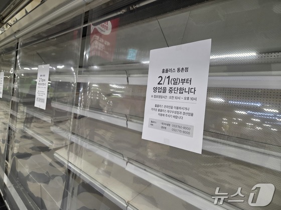 30일 대구 동구에 있는 홈플러스 동촌점 매대가 텅 빈 모습을 보이고 있다.2026.1.30 뉴스1 이성덕 기자서울회생법원이 홈플러스 회생절차 계속 …