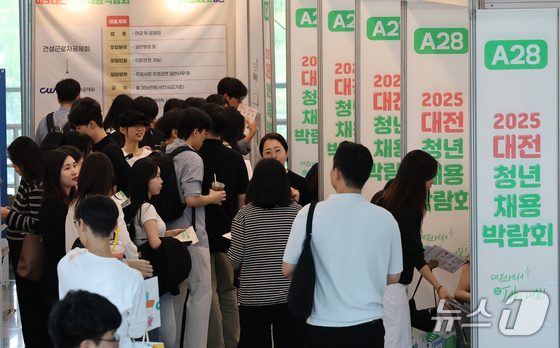 9월 대전시청에서 열린 2025 대전청년채용박람회에서 구직자들이 구직활동을 하고 있다.. 2025.9.30/뉴스1 News1 김기태 기자지난해 19~…