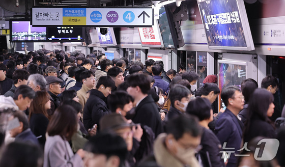 서울 지하철 1호선~8호선을 운영하는 서울교통공사 노조가 임금·단체협약 협상 결렬로 준법운행에 들어간 1일 서울 중구 서울역에서 시민들이 지하철을 이용해 출근길을 서두르…