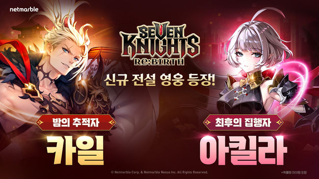 [OSEN=고용준 기자] 밤의 추적자 카일, 최후의 집행자 아킬라 등 새로운 전설 영웅 2종이 '세븐나이츠 리버스'에 추가된다. 넷마블은 지난 16일 수집형 RPG '세븐나이츠 리