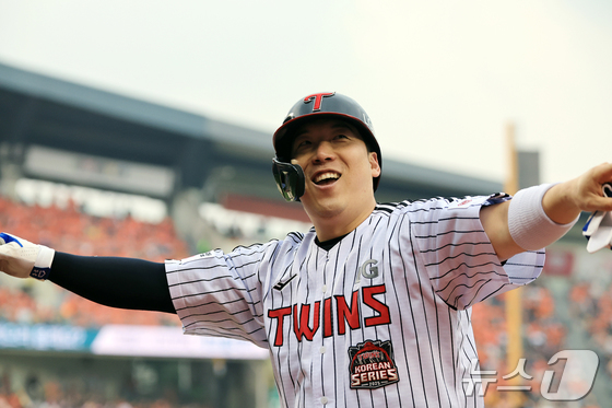 일 서울 잠실야구장에서 열린 프로야구 신한 SOL뱅크 KBO 포스트시즌 한국시리즈 차전 한화 이글스와 LG 트윈스의 경기, LG 김현수가 회말 사 ,…