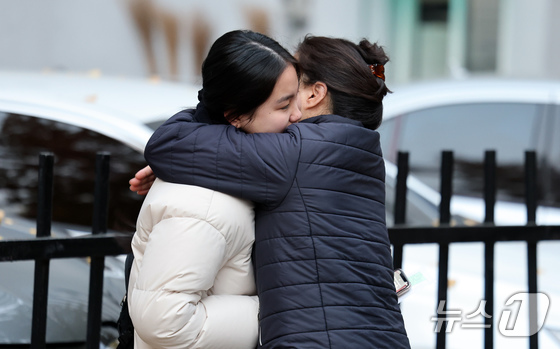 2026학년도 대학수학능력시험일인 13일 오전 서울특별시교육청 13지구 제14시험장인 서울 영등포구 여의도여자고등학교에서 학부모가 수험생 딸과 포옹하고 있다. 2025.…