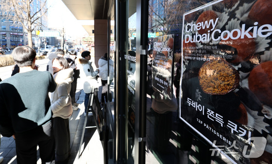 '두바이 쫀득 쿠키두쫀쿠' 열풍이 계속되는 20일 오후 서울 종로구 한 제과점에서 시민들이 두쫀쿠를 구매하기 위해 줄을 서 있다. 2026.1.20/뉴…