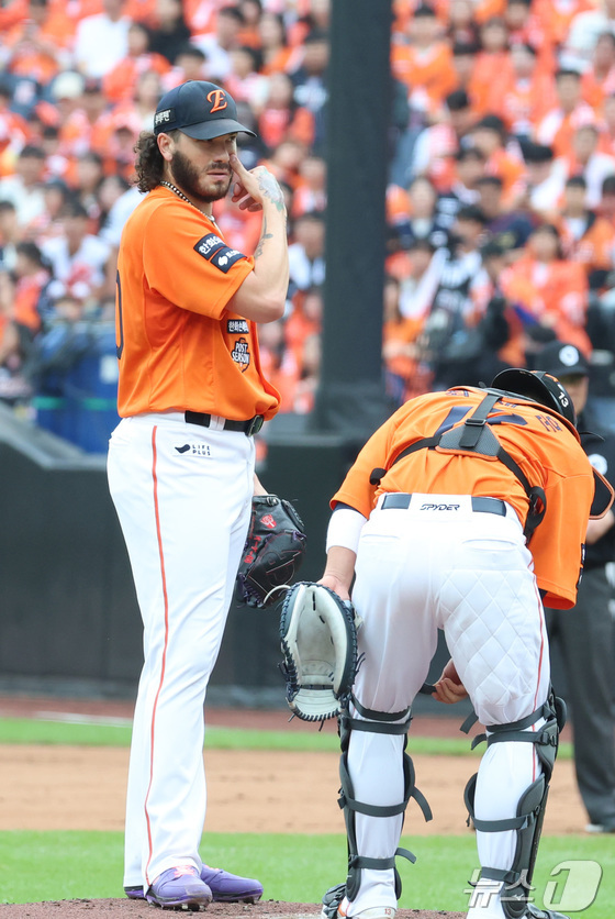 일 대전 한화생명볼파크 열린 프로야구 신한 SOL뱅크 KBO 플레이오프 차전 삼성 라이온즈와 한화 이글스의 경기에서 한화 폰세가 회 실점 하고 있다. …