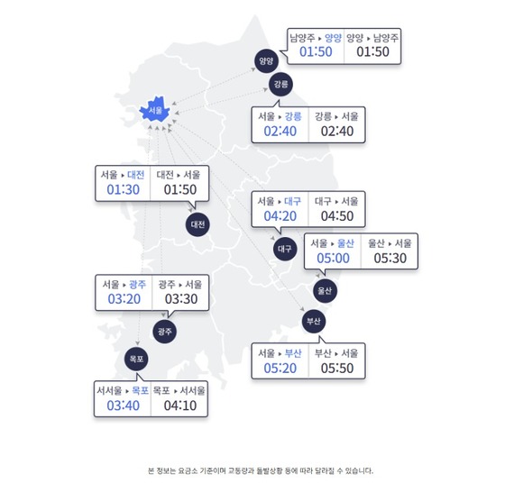 23일 오전 10시 기준 서울과 지방 주요 도시간 고속도로 이동 예상 소요시간 한국도로공사 홈페이지 갈무리일요일인 23일은 쌀쌀한 날씨에 나들이…