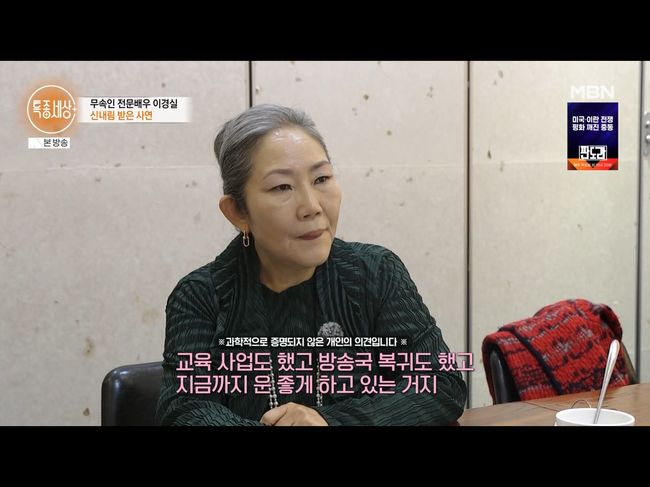 <리뷰 : 방송 시청 후 작성된 리뷰 기사입니다.> [OSEN=오세진 기자] ‘특종세상’ 배우 출신 무속인 이경실이 무속인으로서의 삶을 공개했다. 12일 방송된 MBN ‘특종세상’