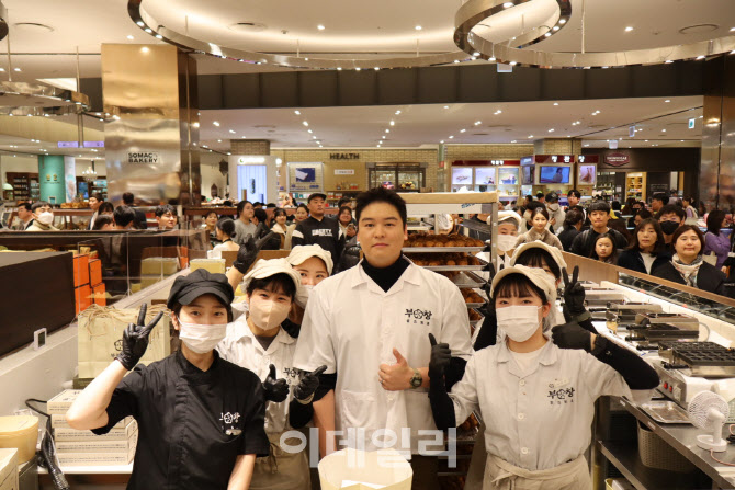 [이데일리 김지우 기자] ‘호두 부케’로 화제가 된 배우 이장우가 결혼 후 신혼여행 대신 호두과자 브랜드 ‘부창제과’의 부산 매장을 방문했다. 매장에는 인파가 몰리며 문전성시를 이
