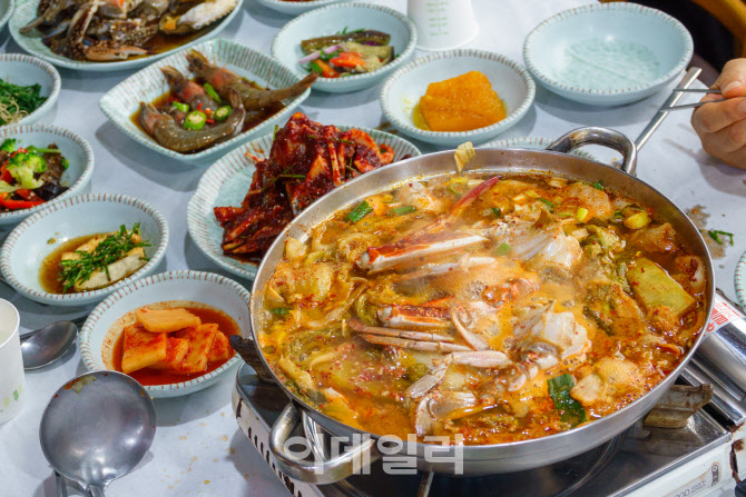 [태안(충남)=글·사진 강경록 여행전문기자] 충남 태안군 안면읍 꽃지해변 인근 ‘딴뚝통나무집식당’은 1981년부터 40년 넘게 같은 자리에서 ‘게국지’를 끓여 온 노포다. 정부가