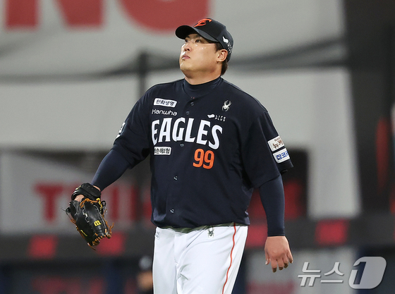 일 대구삼성라이온즈파크에서 열린 신한 SOL뱅크 KBO 포스트시즌 플레이오프 차전 한화 이글스와 삼성 라이온즈의 경기, 한화 선발 류현진이 회말 사 삼…