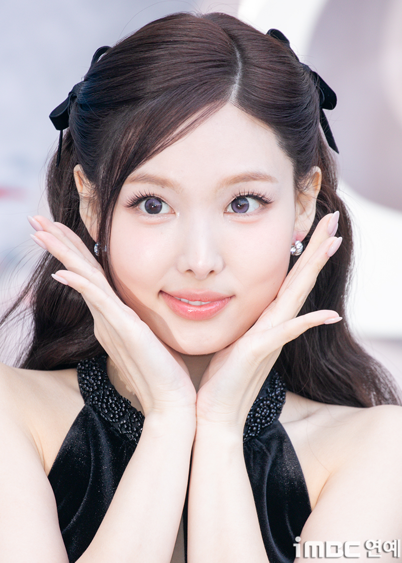 트와이스(TWICE) 나연이 20일 오전 서울 성수동에 위치한 한 플래그십 스토어에서 열린 뷰티 브랜드 출시 기념 행사에 참석해 포즈를 취하고 있다. 이날 트와이스 나연은 굵은 웨