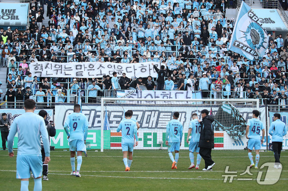 30일 오후 대구 북구 대구iM뱅크PARK에서 열린 하나은행 K리그1 2025 38라운드 최종전 대구FC와 FC안양의 경기, 2대 2 무승부를 거두며 2부 리그 강등이 …