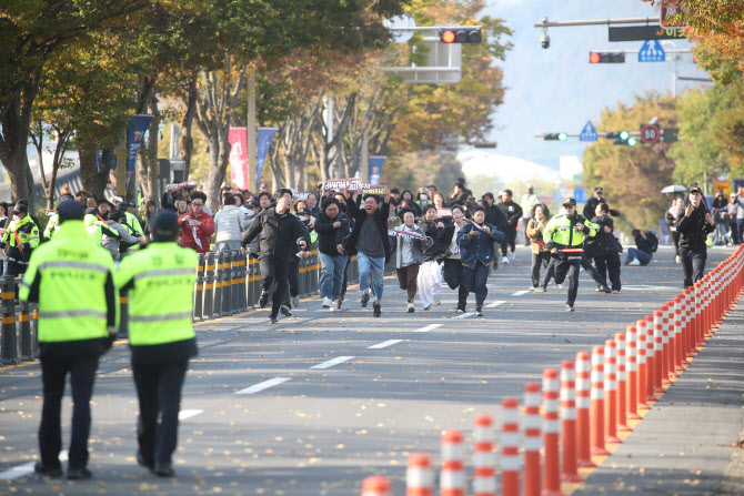 [이데일리 손의연 기자] 경찰이 29일 한미정상회담이 열리는 경주 박물관 인근에서 ‘반(反) 트럼프’ 집회를 벌이는 시위대에 대해 강제해산에 나섰다. 29일 오후 한미 정상회담이