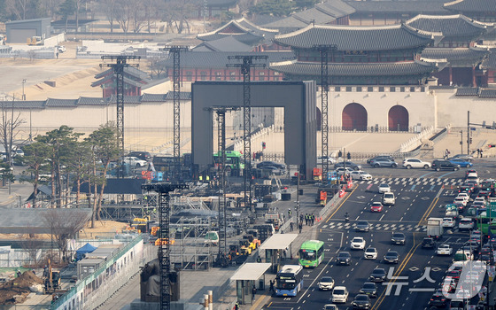 방탄소년단BTS 컴백 공연을 나흘 앞둔 17일 오전 서울 광화문광장에서 공연 무대 설치 작업이 분주하게 진행되고 있다. 2026.3.17 …