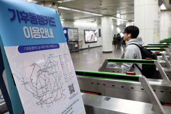 [이데일리 이영민 기자] 서울시는 오는 25일부터 모바일 티머니 앱을 통해 실물 기후동행카드의 충전과 사용정지, 환불이 가능해진다고 23일 밝혔다. 서울 광화문역에 설치된 관련 안