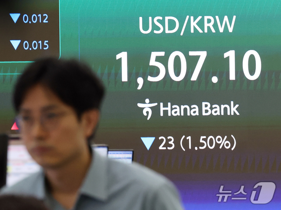 코스피 지수가 5% 넘게 오르며 장 초반 매수 사이드카가 발동된 1일 오전 서울 중구 하나은행 딜링룸 전광판에 원·달러 환율 시황이 표시되고 있다.2026.4.1 &co…