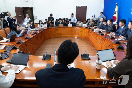 김병기 더불어민주당 원내대표가 일 서울 여의도 국회에서 열린 국정감사 기자간담회에서 모두발언하고 있다. ../뉴스 News 이승배 기자…