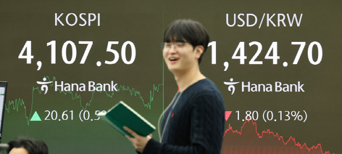 코스피, 4100선 뚫어 또 최고치…"대형주 실적 모멘텀 견조"[마감]