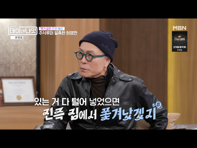 <방송 시청 후 작성된 리뷰 기사입니다.> [OSEN=배송문 기자] 만화가 허영만이 자신을 둘러싼 ‘주식루머’에 대해 직접 입을 열었다. 31일 방송된 MBN ‘김주하의 데이앤나잇