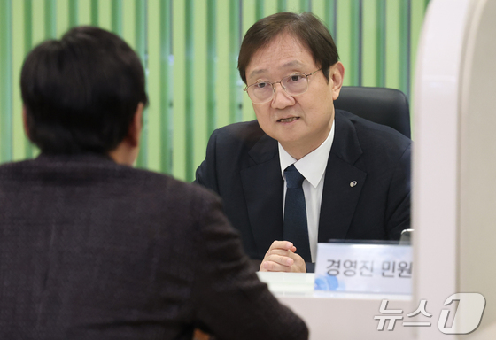 이찬진 금융감독원장이 5일 오전 '경영진 민원상담 Day'를 맞아 서울 여의도 금융감독원 금융민원센터 상담 부스에서 민원인과 상담을 하고 있다. 이날 민원 상담은 금감원…