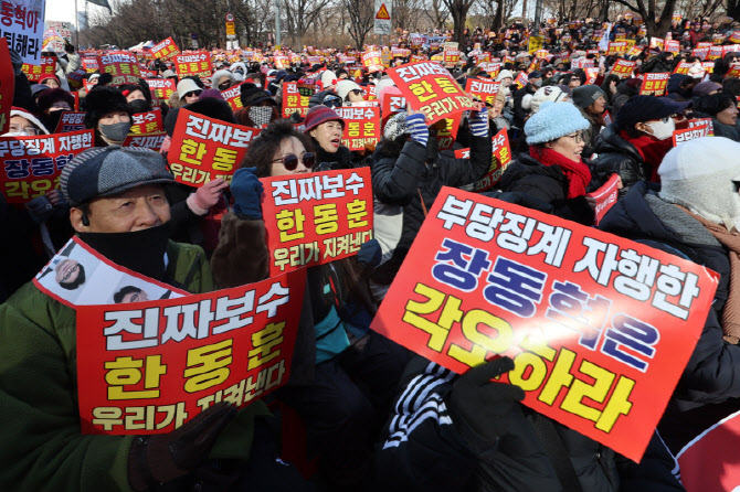 “윤 어게인 꺼져라”…한동훈 지지자들 대규모 집회