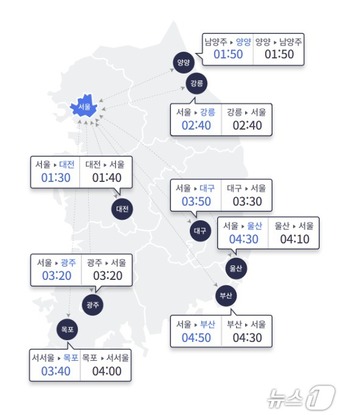 29일 오전 10시 기준 서울과 지방 도시간 예상 이동 시간한국도로공사 홈페이지 갈무리전국 낮 최고기온이 22도까지 오르는 29일에는 봄철 나들…