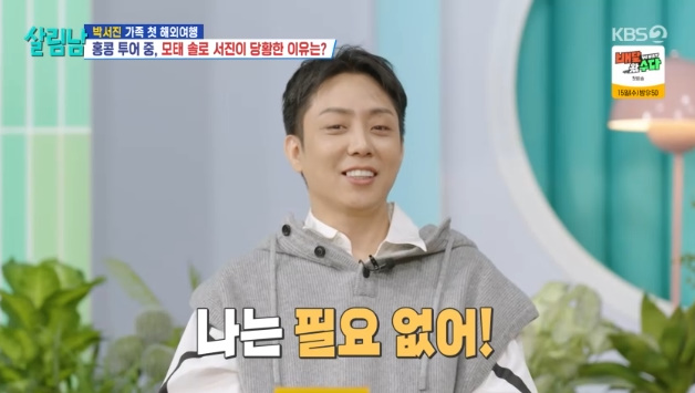 [OSEN=김나연 기자] '살림남' 박서진이 새신랑 은지원을 위한 '몸짱' 티셔츠 선물을 약속했다. 11일 방송된 KBS2 '살림하는 남자들2'에서는 가족들과 마카오 여행을 떠난