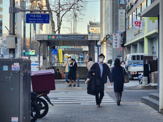 23일 서울 서초구 교대역 앞에 시민이 마스크를 끼고 걸어가고 있다. 2026.02.23 / 권진영 기자한파가 지나고 '마스크'의 계절이 찾아왔다. 전날부터 지속…