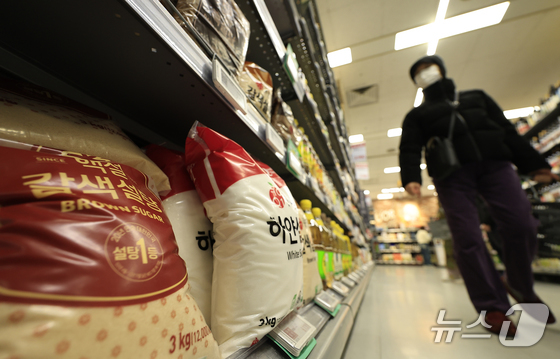 정부의 물가 안정 기조에 주요 식품업체들이 설탕과 밀가루 가격을 인하한 가운데 6일 서울 시내의 한 대형마트에 설탕 제품이 진열되어 있다. 2026.2.6 …