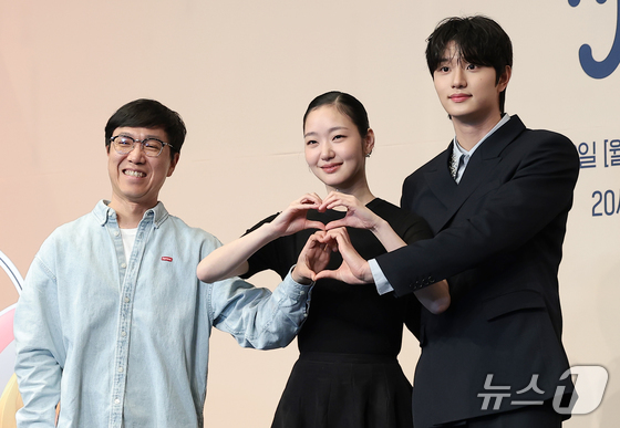 이상엽 감독왼쪽부터과 배우 김고은, 김재원이 7일 서울 구로구 더 링크호텔 서울에서 열린 티빙 새 드라마 '유미의 세포들3'극본 송재정, 김경…