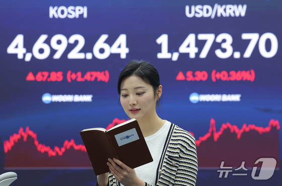 서울 중구 우리은행 본점 딜링룸 전광판에 증시 표시가 나오고 있다. 2026.1.13/뉴스1 News1 김성진 기자국민연금의 해외투자가 늘어나더라도 …