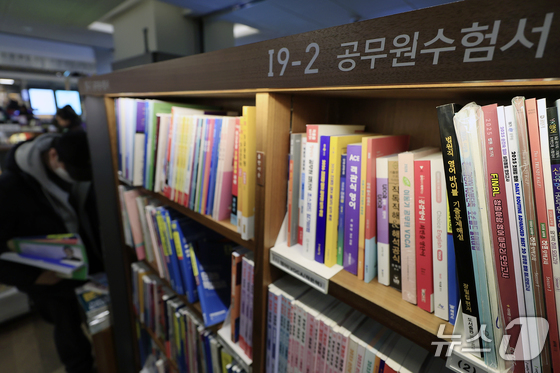 정부의 공무원 채용 규모 확대 및 처우 개선 등으로 공무원 시험 시장이 꿈틀대는 가운데 지난 4일 서울 광화문 교보문고를 찾은 공시생이 수험서를 살펴보고 있다. 2026…