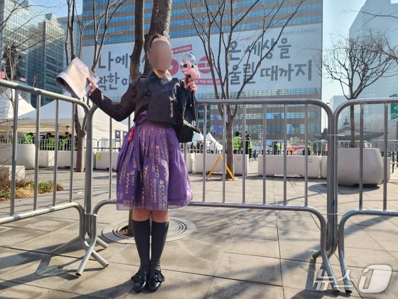 광화문은 벌써 보랏빛…한복 입고 신문 호외 들고 방긋