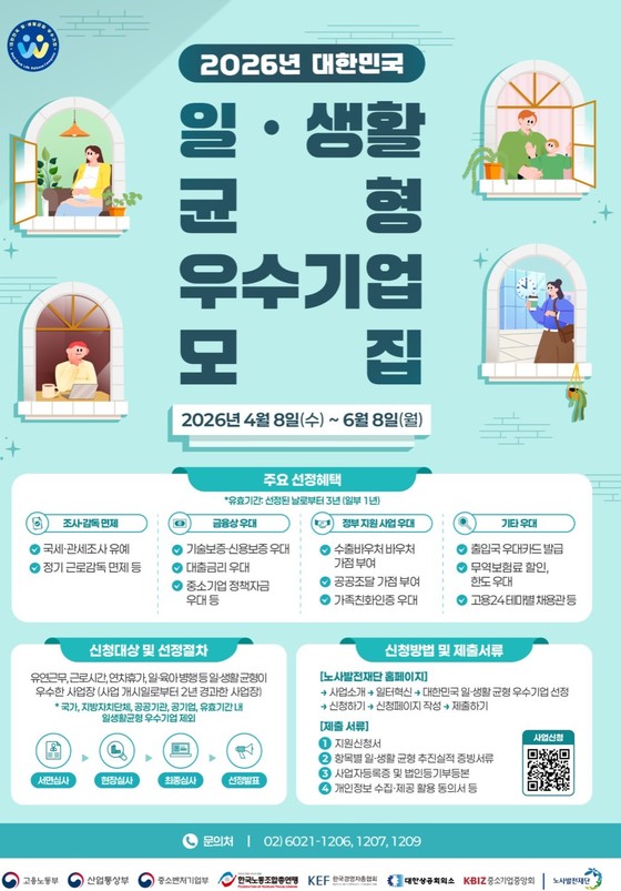 고용노동부는 산업통상부, 중소벤처기업부 등 관계부처 및 경제단체와 함께 '대한민국 일·생활 균형 우수기업'을 모집한다고 7일 밝혔다. 일·생활 균형 문화 확산을 …