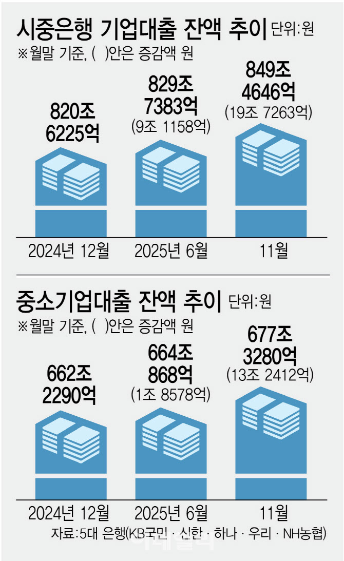 생산적 금융 압박에, 기업대출 하반기에만 20조 늘었다
