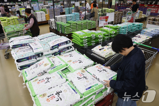 서울의 한 대형마트를 찾은 시민들이 쌀을 살펴보고 있다. News 이광호 기자장기간 오름세를 이어오던 산지 쌀값이 개월 만에 하락세로 돌아섰다. …