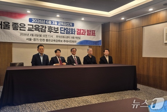 '서울·경기·인천 좋은교육감후보 추대시민회의'시민회의는 6일 한국프레스센터에서 기자회견을 열었다.오는 6월 서울시교육감 선거를 앞두고 보수 진영…