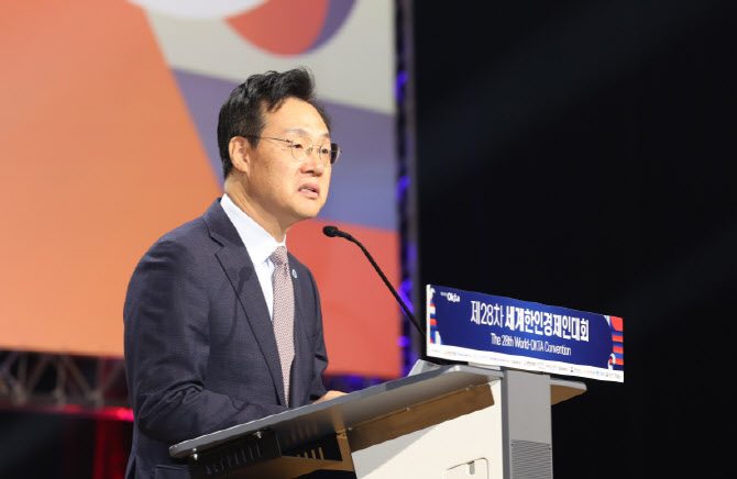 [인천=이데일리 이종일 기자] 전 세계 한민족 경제인들이 한자리에 모이는 제29차 세계한인경제인대회가 27일 인천 송도컨벤시아에서 개막했다. 인천시와 세계한인경제무역협회는 이날 오
