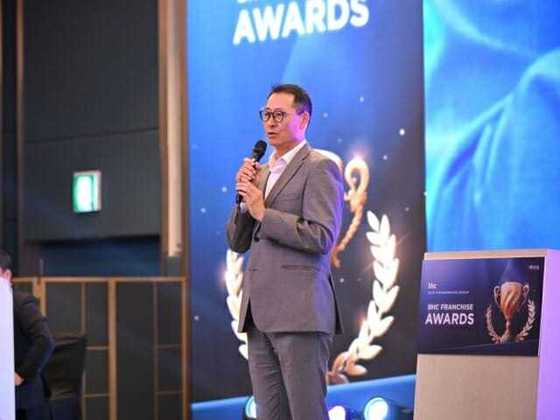 지난달 bhc 프랜차이즈 어워드에서 송호섭 대표이사가 인사말을 하고 있다.다이닝브랜즈그룹 제공다이닝브랜즈그룹이전문경영인체제도입이후투명한지배구조를…