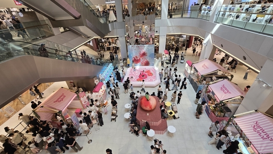 타임빌라스 수원에서 열린 '복숭아주의보' 팝업에 방문한 수많은 고객들의 모습롯데백화점 제공'타임빌라스 수원'이 오는 일 그랜드 오픈 주년을…
