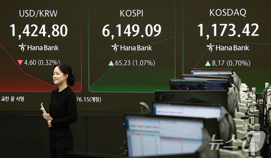 26일 서울 중구 하나은행 딜링룸 전광판에 코스피 등 시황이 표시되고 있다. 2026.2.26 뉴스1 김도우 기자달러·원 환율이 글로벌 위험선호 심리…