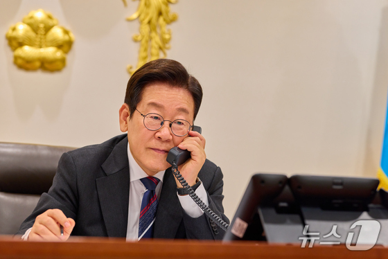 이재명 대통령이 일 서울 용산 대통령실 청사 집무실에서 아누틴 찬위라꾼 태국 총리와 전화 통화하고 있다. 대통령실 제공. 재판매 및 DB 금지…